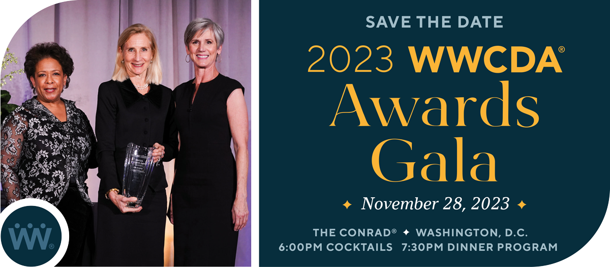 The WWCDA Awards are presented annually at the WWCDA Awards Dinner Gala held in Washington, D.C. on the first Tuesday after U.S. Thanksgiving. Previous Galas have featured three U.S. Attorneys General, former Solicitor General, former Chief of the DOJ Criminal Division, former Chair the SEC, former SEC Chief of Enforcement, the Chief Judge of the U.S. District Court for the District of Columbia, the CEO and GC of Goldman Sachs, Google's Chief Legal Officer, the General Counsel and Chief Compliance Officer of Salesforce, the NFL's General Counsel, Merck's General Counsel, Novartis General Counsel, the Chairs of several major law firms, NPR's Nina Totenberg, a tribute to Justice Ruth Bader Ginsburg and a performance by Elton John’s keyboardist. The Gala has has also included WWCDA Chapter Roll Call with greetings from chapter members from around the world and recognition of WWCDA Trailblazers.